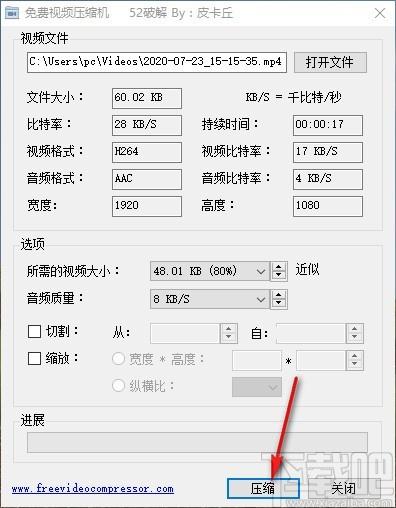 6、完成相关设置后,点击压缩,即可快速进行压缩